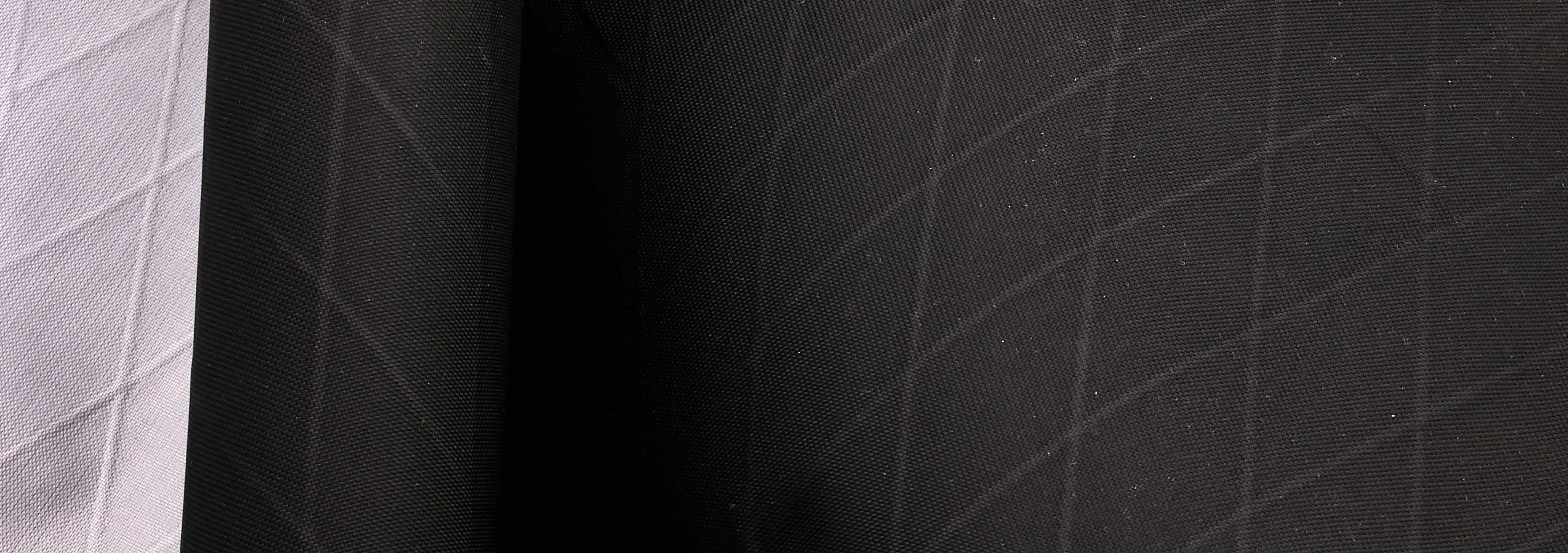 Das Außengewebe ist ein 70denier-Ripstop-Nylon, das Innengewebe ein ultraleichtes Polyester-Tafetta, und dazwischen haben wir die typischen X -PLY Fasern, die dieses Material extrem reiß- und dehnfest machen. So entsteht ein wasserdichtes, steifes, reiß-, dehn- und UV-beständiges Laminat - perfekt für Rucksäcke!